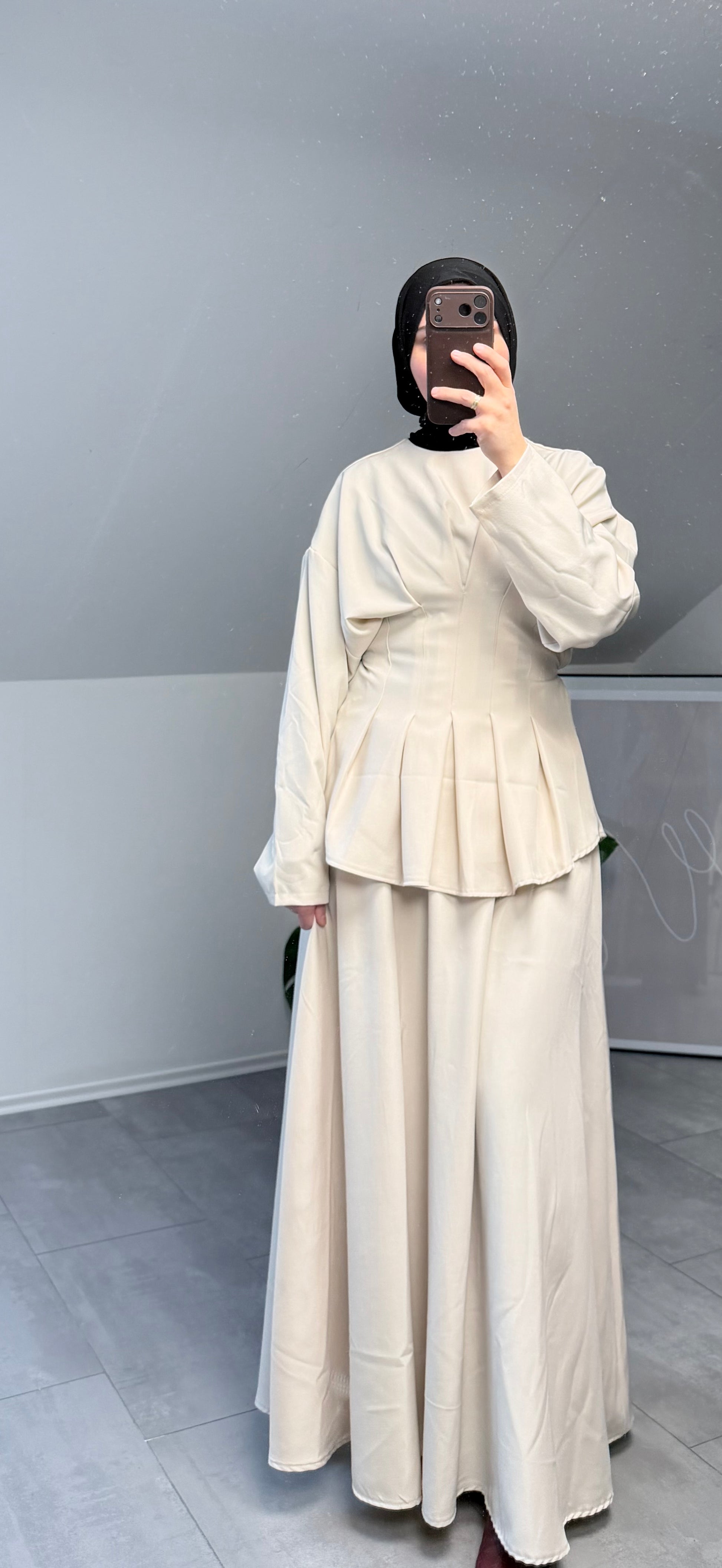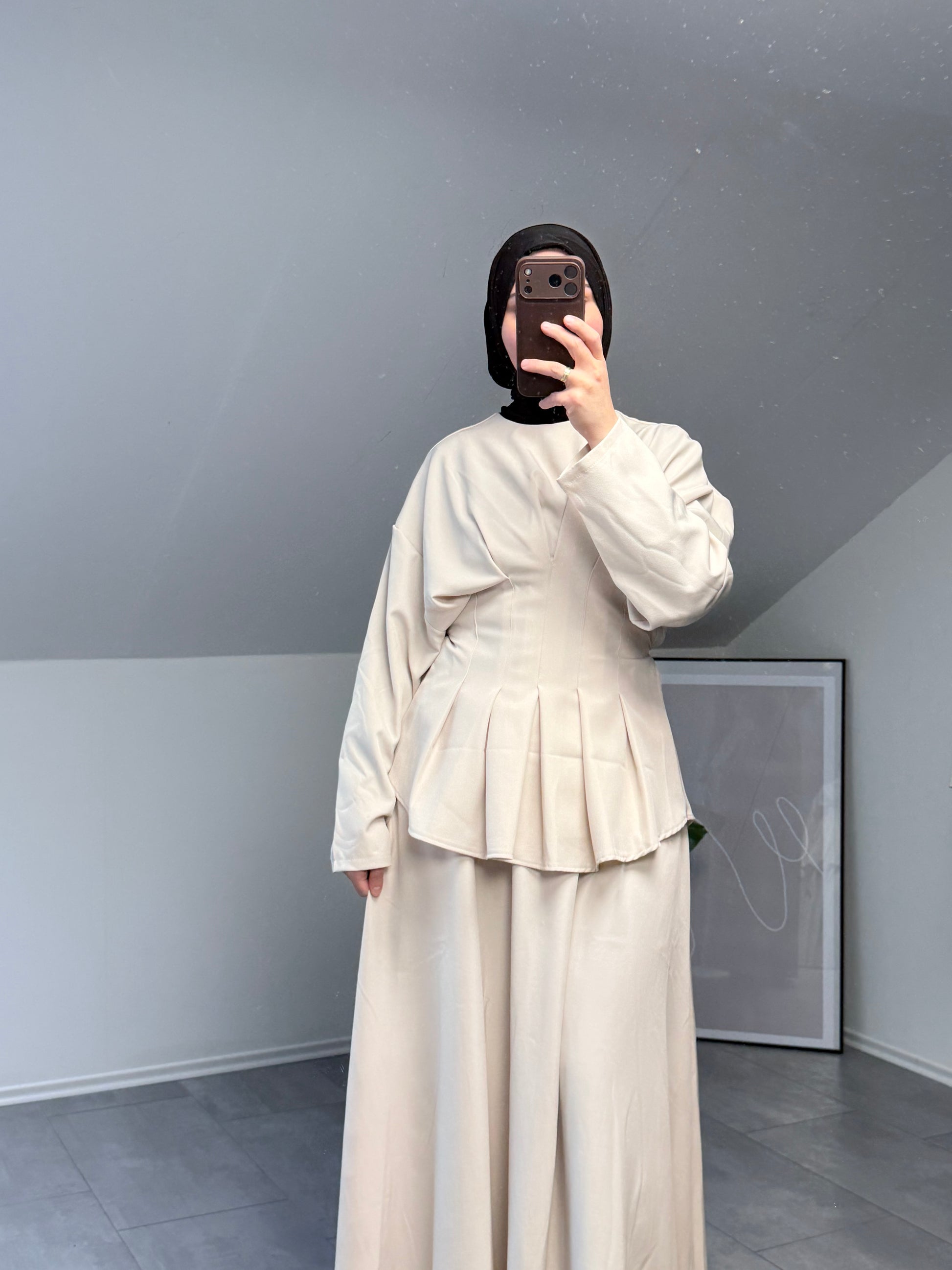 Design: Tailliertes Oberteil mit modernem Plissee-Saum für eine feminine Silhouette.